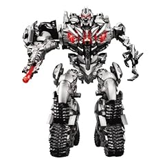 Prepare for an exciting battle with this DECEPTICON leader! In robot mode, this mighty warrior features electronic speech and light-up eyes and chest that give away his diabolical intentions. And with a flip-out sword, this bad guy is ready to give AUTOBOT forces the fight of their lives! In tough alien tank mode, a firing fusion cannon and blasting sounds lets attackers know this villain means business. MECH ALIVE gearing reveals moving armor panels and internal gears so you can recreate some of your favorite movie scenes â or create your own! Grab this fearsome foe and roll out!